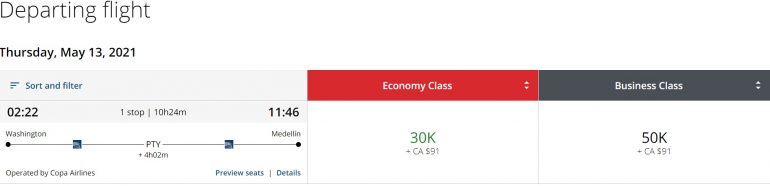 You can likewise book a Copa Airlines business class seat using Air Canada points. To do so, simply search for a flight on the Air Canada website and specify that you want to book with points. Use your Aeroplan points to snag a business class flight through Panama City to your final destination.