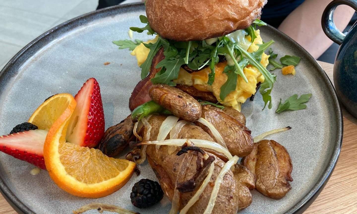 Across the board, ingredients are high-quality. The breakfast sandwich (pictured above) is served on a fluffy brioche, and other dishes incorporate elevated elements, too. For example, oatmeal is served with agave, and edible flowers garnish the avocado toast.