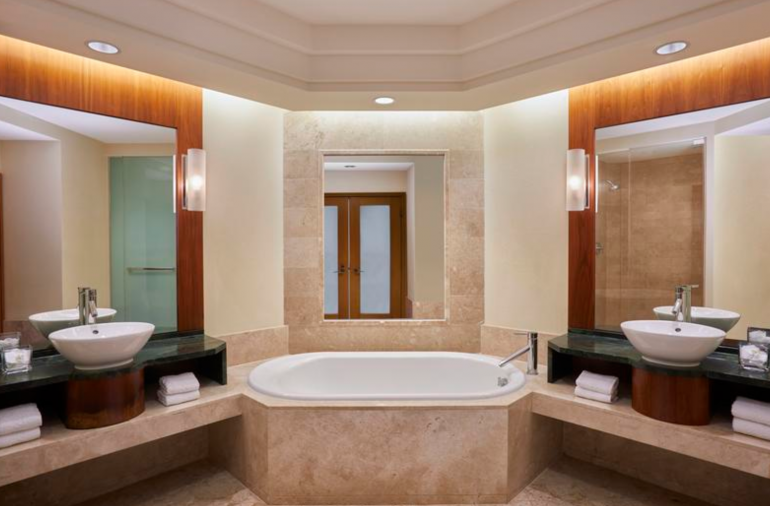 The bathrooms are spacious with soaking tubs, glass shower stalls and dual vanities. In addition to the Ocean Suite category, there are larger suite options with more bedrooms and living space, ideal for families.