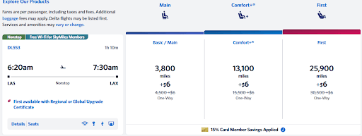 Those with a Delta SkyMiles credit card can unlock even lower fares, as in the example above, slashing 15% off the redemption. That’s because Delta co-branded American Express cards offer a TakeOff 15 benefit for Delta-operated and Delta-marketed flights. Terms apply.