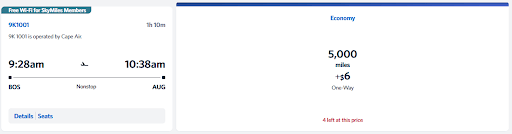 This is one area where the airline excels, but you’ll have to fly in economy (and be willing to sometimes book a basic economy award ticket). But, if so, you can find incredibly cheap redemptions on some short-haul flights in competitive markets (often where the cash cost of a ticket is also low). If you live in a market like New York or Los Angeles or Seattle, where there are a lot of airlines competing for customers, you can find great deals as low as 4,500 miles.