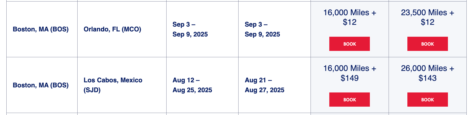 Boston to Los Cabos from 16,000 SkyMiles (basic economy)/26,000 SkyMiles (main cabin).