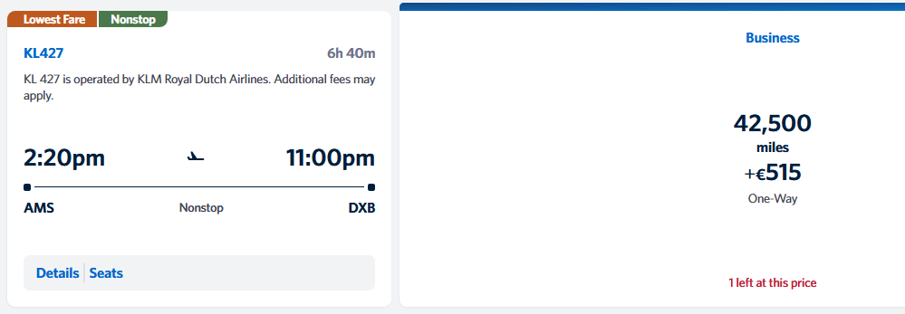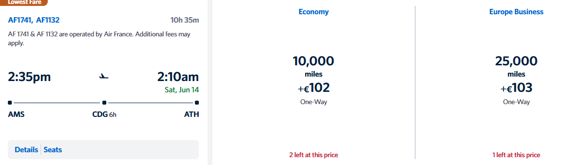 Flights within Europe are not always expensive, given the large number of low-cost airlines available. But there are times when airfare can be more than expected, and miles can come in handy. This can be a great deal if you are traveling on longer sectors or prefer to upgrade to business class since you can enjoy an in-flight meal, lounge access and priority perks if you don’t have elite status with SkyTeam.