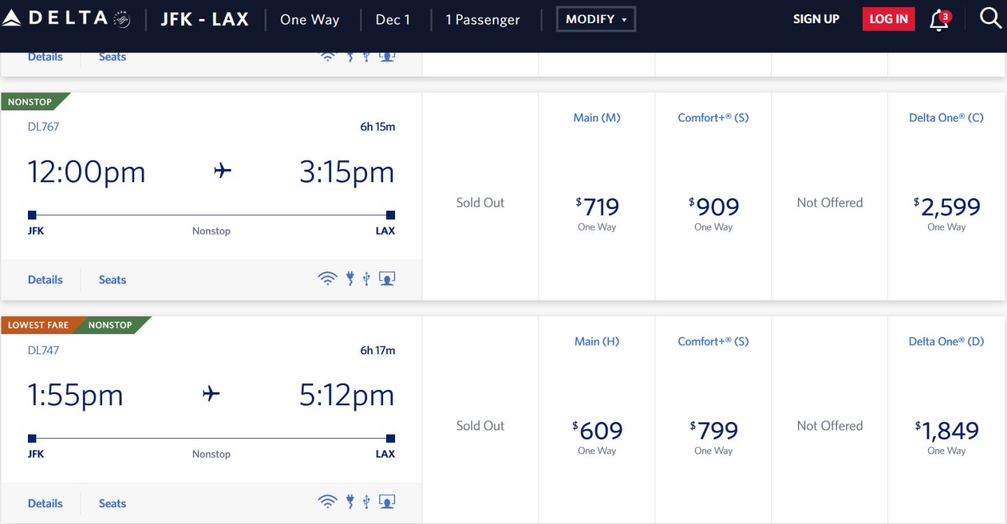 Delta fare class overview