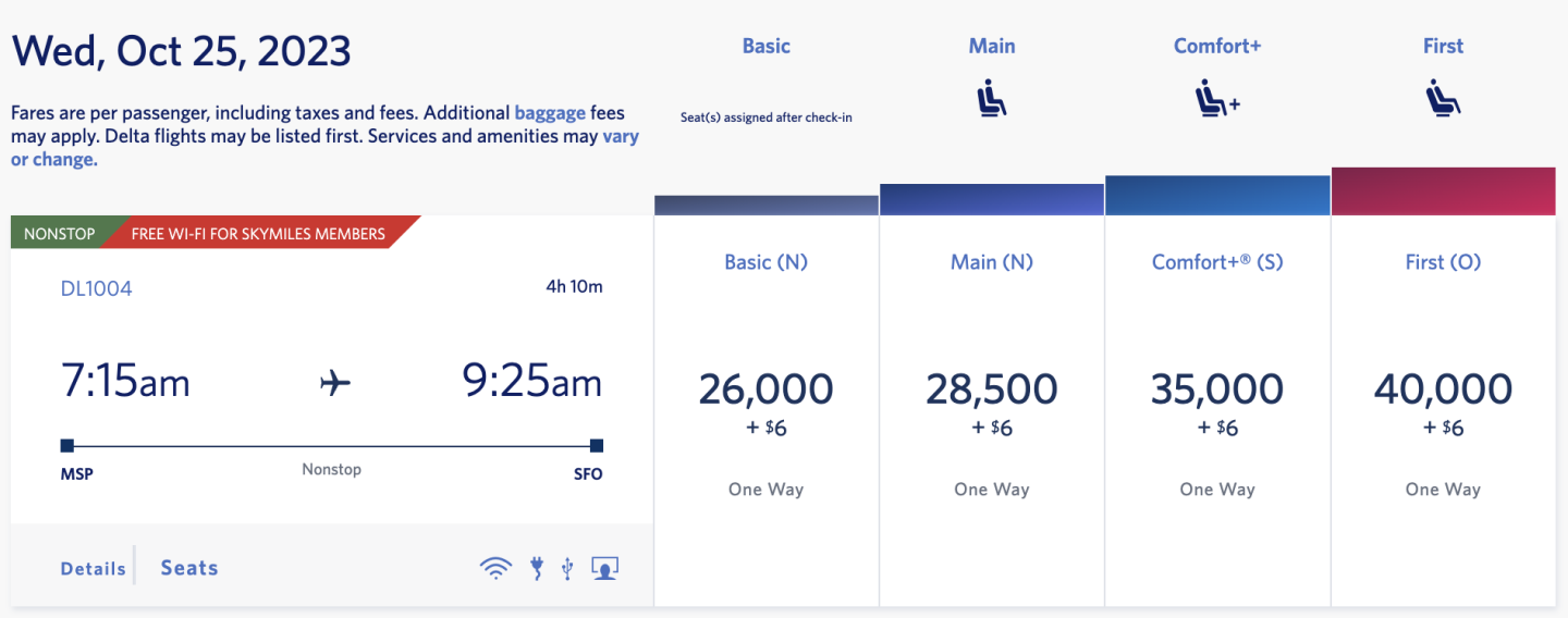 If you're booking an award ticket with your SkyMiles, you’ll see main cabin fares in your search results there too.