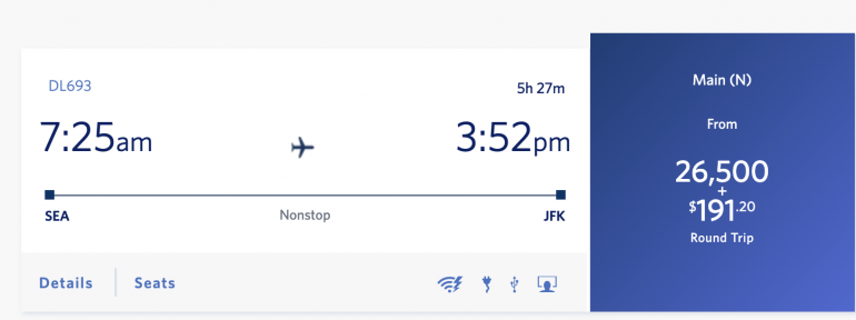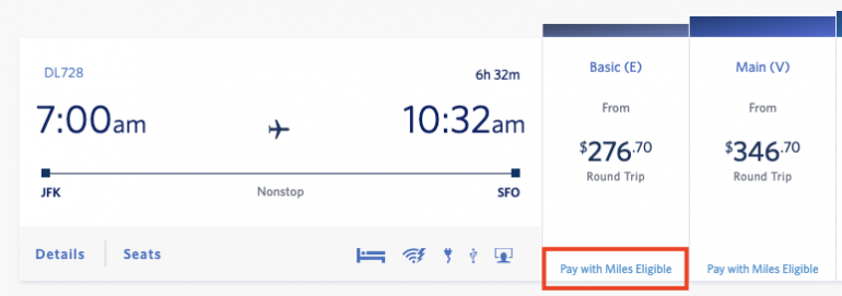As you can see, you can offset the cost of the cash fare using SkyMiles in 5,000-mile increments.