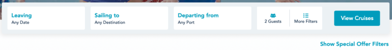 This first option seems obvious, but you’ll want to specifically search for discounted sailings. Although Disney doesn’t always offer sales, if they are available, you'll find them on the Disney cruise line page — just click “Show special offer filters” when searching.