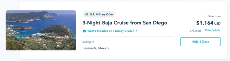 You’ll be able to find these deals via that special offers filter shown above. For example, that three-night San Diego sailing mentioned above dropped from $1,326 to $1,164 once we selected the U.S. military filter.