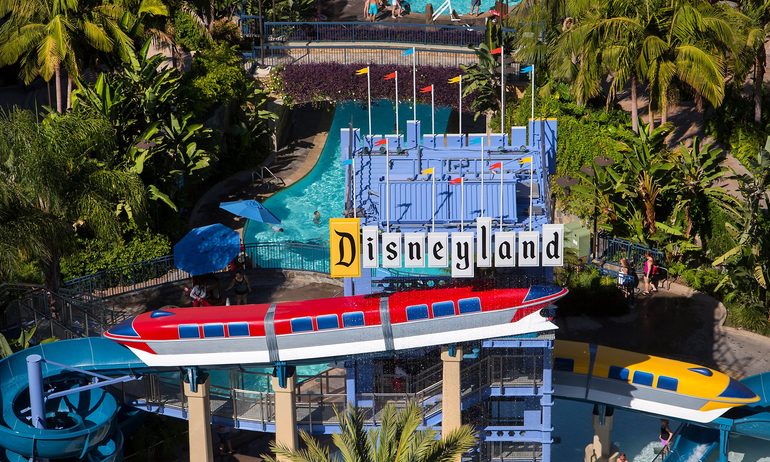 Disneyland Hotel doesn’t have its own private entrance into a park; instead, guests with a Disneyland Park reservation for the day can walk a short distance to the Monorail stop in Downtown Disney and get dropped off at Tomorrowland inside Disneyland.