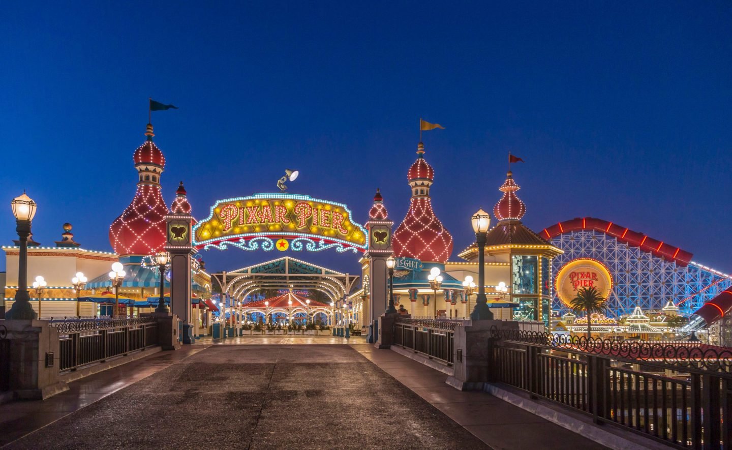 Pixar Pier. Thrill-seekers will love the Incredicoaster at Pixar Pier. For a birds-eye view of the park, hop aboard the Pixar Pal-A-Round Ferris wheel. If you want a bite with a view, the area is home to the Lamplight Lounge, which serves gastropub-style food on the waterfront.