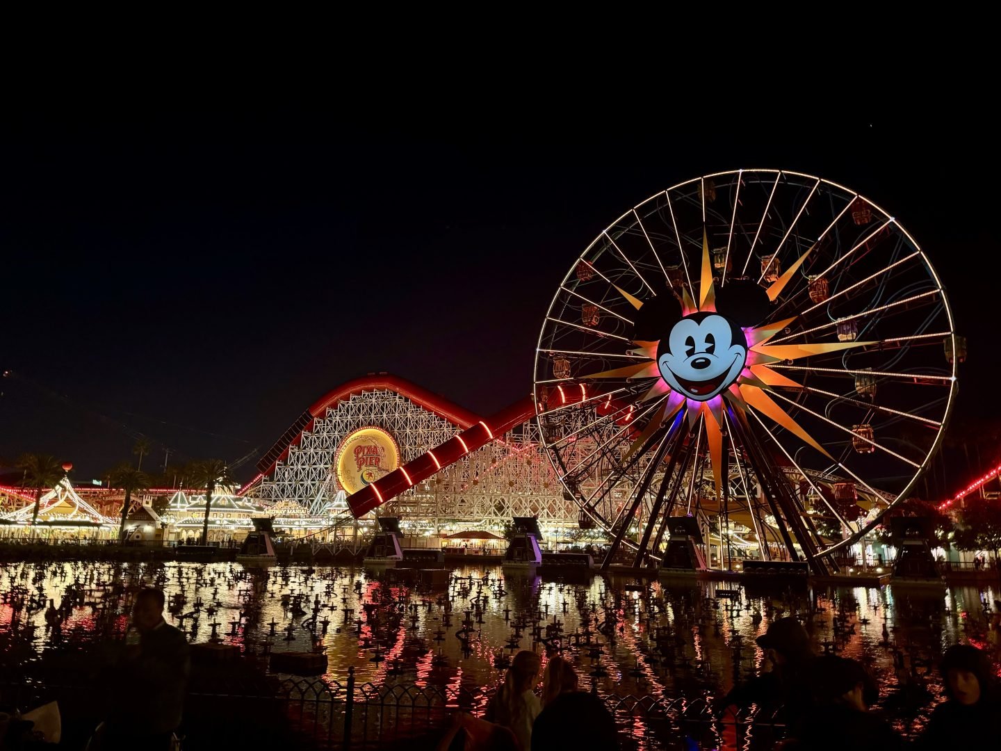 Pixar Pier lights up at night. (Photo by Sally French)