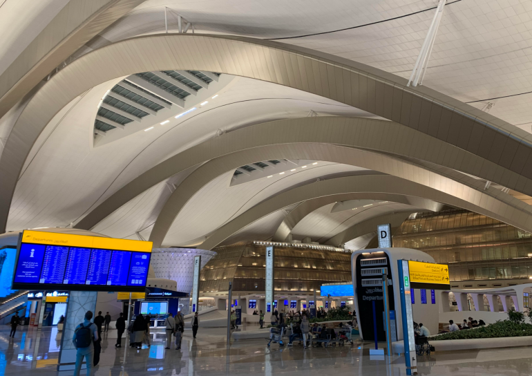 Terminal A, which just opened in November 2023, is bright and airy. It showcases enormous windows and an undulating roof sculpture that looks like the shape of the region's desert sand dunes.