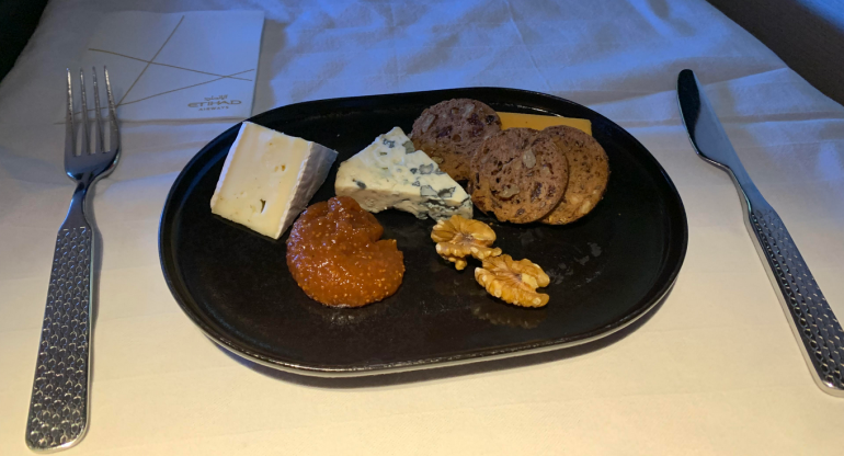 Interestingly, Etihad uses trays in business class rather than putting the dishes one by one on the table like its peers. Still, this made the service more efficient for the flight attendants and did not detract from the presentation.