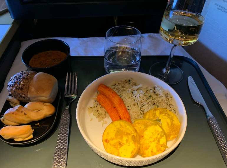 After the light snack, I reclined my seat into bed mode and slept for four hours. My plan was to sleep for eight or nine hours and then have a larger meal before landing, but I could not stay asleep.