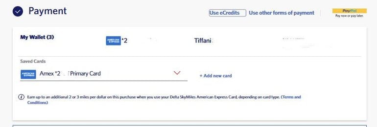 Another way to pay using an eCredit is to search for a flight and in the payment area, select “Use eCredits.”
