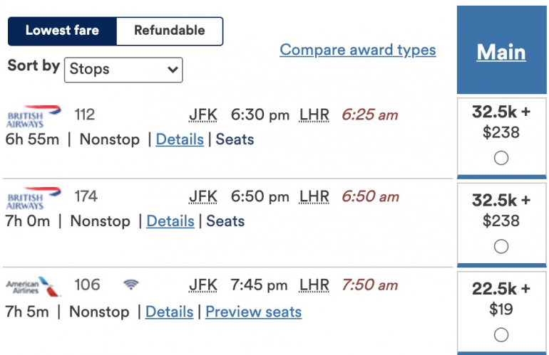 As you can see, flying on British Airways not only costs more miles but also includes hundreds of dollars in fuel surcharges, too. On the flip side, flying American Airlines will cost you fewer miles and less in fees.