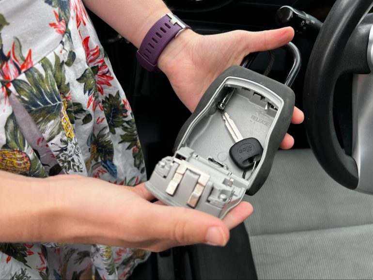 Upon unlocking the car via the app, you'll obtain the physical key which is placed somewhere inside the car. Many owners put the key inside a lockbox for additional safety (and they'll communicate the lockbox code to you upon booking). (Photo by Hamilton Nguyen)