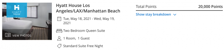 With Hyatt, look for extended-stay properties; in this case, Hyatt House will be the best option for a reservation. Hyatt operates on a fixed price award chart for redemptions, and a suite will likely be considered a “standard suite free night.”