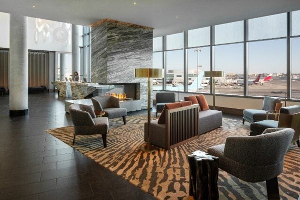 Perched atop terminal D, DFW’s main international departure point, the Grand Hyatt DFW has rooms with great views of sky traffic. In addition to its ample meeting space and dining options, there’s also a rooftop swimming pool and terrace. Its location alone makes it another attractive example of hotels inside airport terminals that are worth the extended layover.