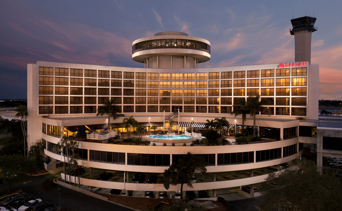 The Tampa Airport Marriott is part of the main airport complex and its an easy walk from the gate to the hotel lobby. Many of the rooms offer great airplane views; plus, there’s an outdoor pool.