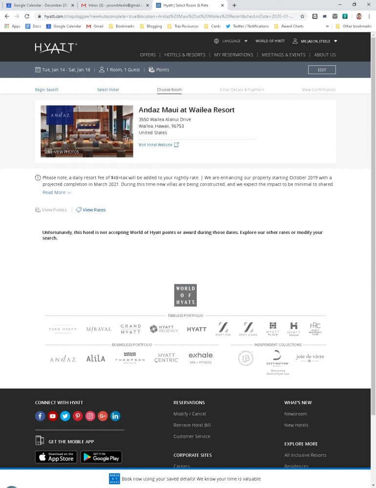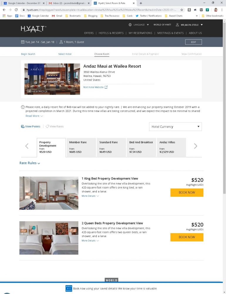 For example, the Andaz Maui at Wailea Resort doesn’t show any awards available for a stay from Jan. 14 to Jan. 18, 2020. Yet if you choose to book with cash, you’ll find rooms available purchase with a “Property Development View,” which is actually a downgrade from the standard room since the hotel is undergoing construction.