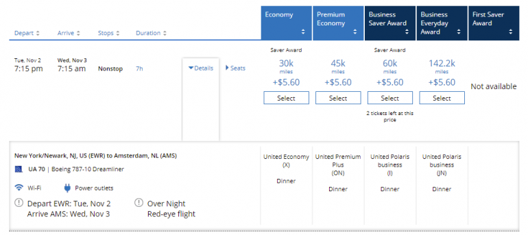 United award prices generally mirror the old award chart. For example, United award flights to Europe generally cost 30,000 miles each way in economy, 45,000 miles in premium economy or 60,000 miles in business class: