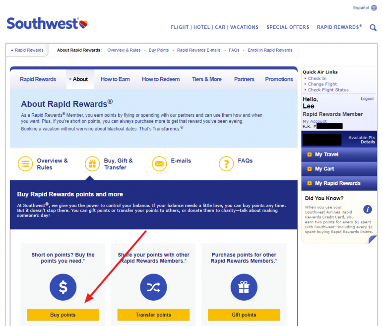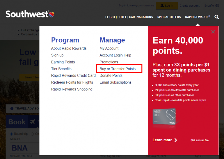 Southwest Airlines partners with Points.com to sell its Rapid Rewards points. Follow these steps to bolster your points collection immediately.