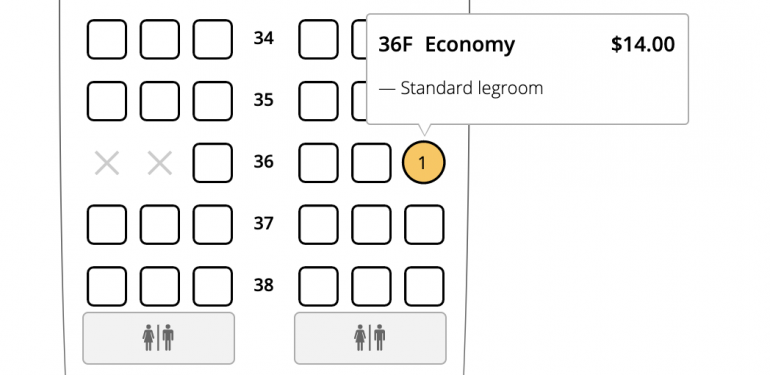 We determined these seat selection fees by looking across several fares and averaging the cost of choosing a window seat near the front of the plane and choosing a middle seat near the back.