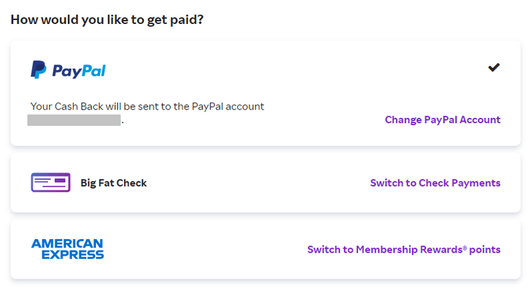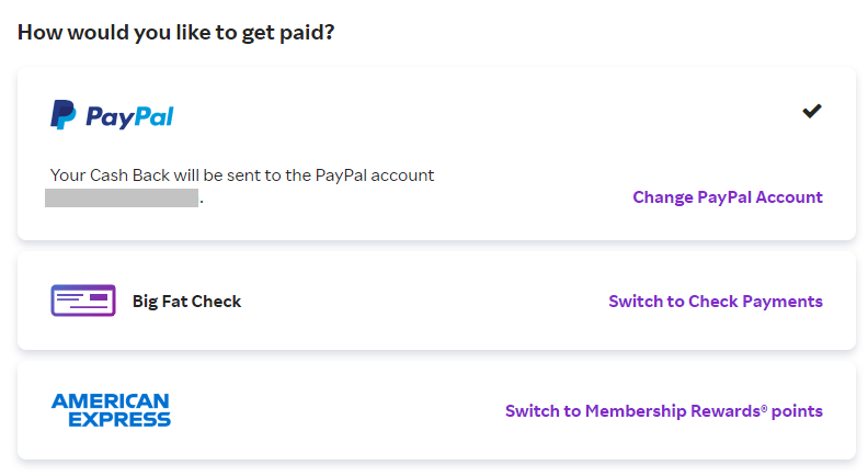 By default, Rakuten earnings are paid as cash back on a quarterly basis through a "Big Fat Check" or a PayPal deposit. However, in 2019, Rakuten added the option for members to opt into earning Membership Rewards points instead of cash back.