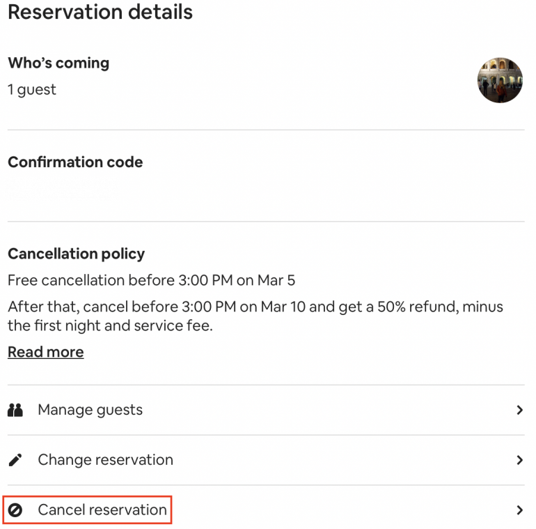 This will take you to your trip page. You’ll select your trip and scroll down to the “Reservation details,” where you’ll find the option to cancel your reservation: