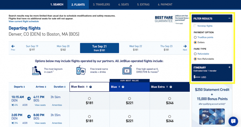 If you want to feel confident that you’re not booking a nonrefundable ticket, all you need to do is filter your flight search results on the JetBlue website to show only refundable ticket options.