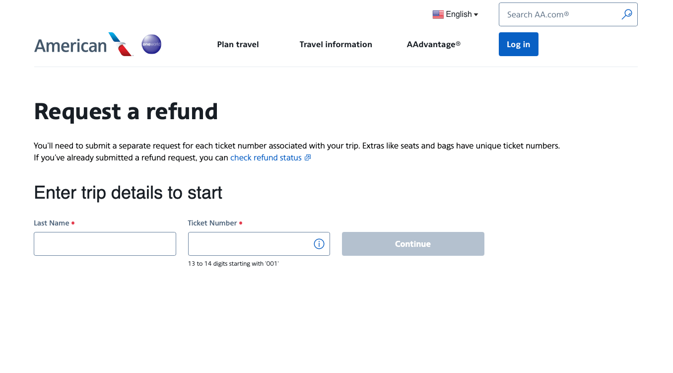 If you’re eligible for a refund, click on the blue "Continue" link to submit a formal refund request to American Airlines.
