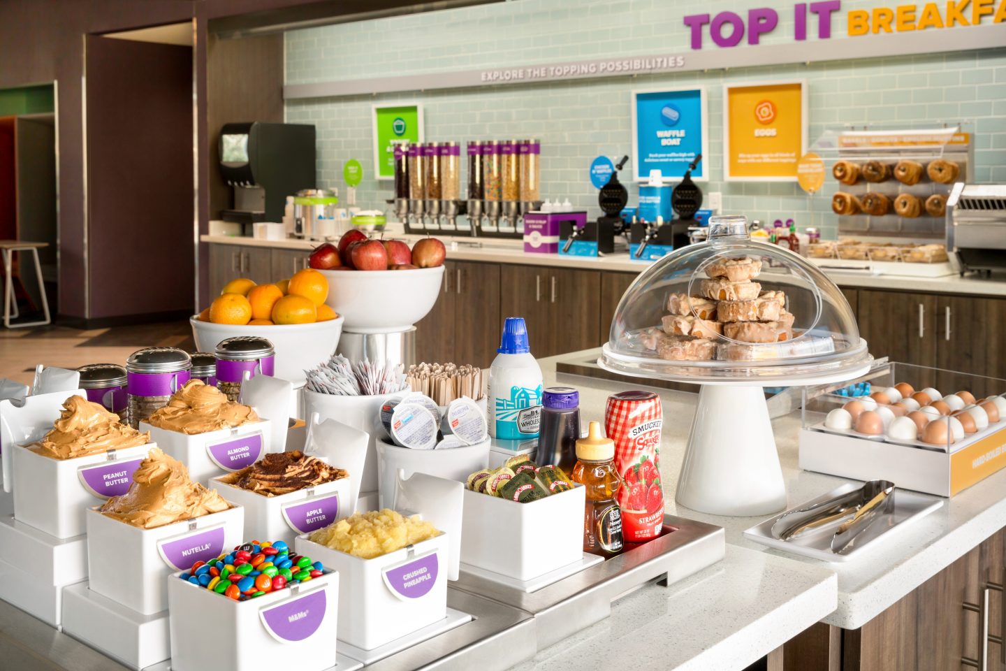 At certain Hilton brands including Embassy Suites by Hilton, Hampton by Hilton, Tru by Hilton (pictured here), Homewood Suites by Hilton and Home2 Suites by Hilton, breakfast is free for all guests, regardless of status. Photo courtesy of Hilton.