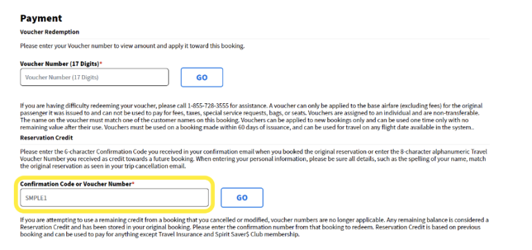 To make a new booking with Spirit Reservation Credits, have on hand your reservation credit number, which is a 6-character alphanumeric code that can be found in your trip cancellation email.