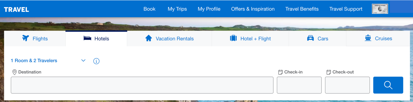 How do you book a hotel stay through the AmEx Travel portal?