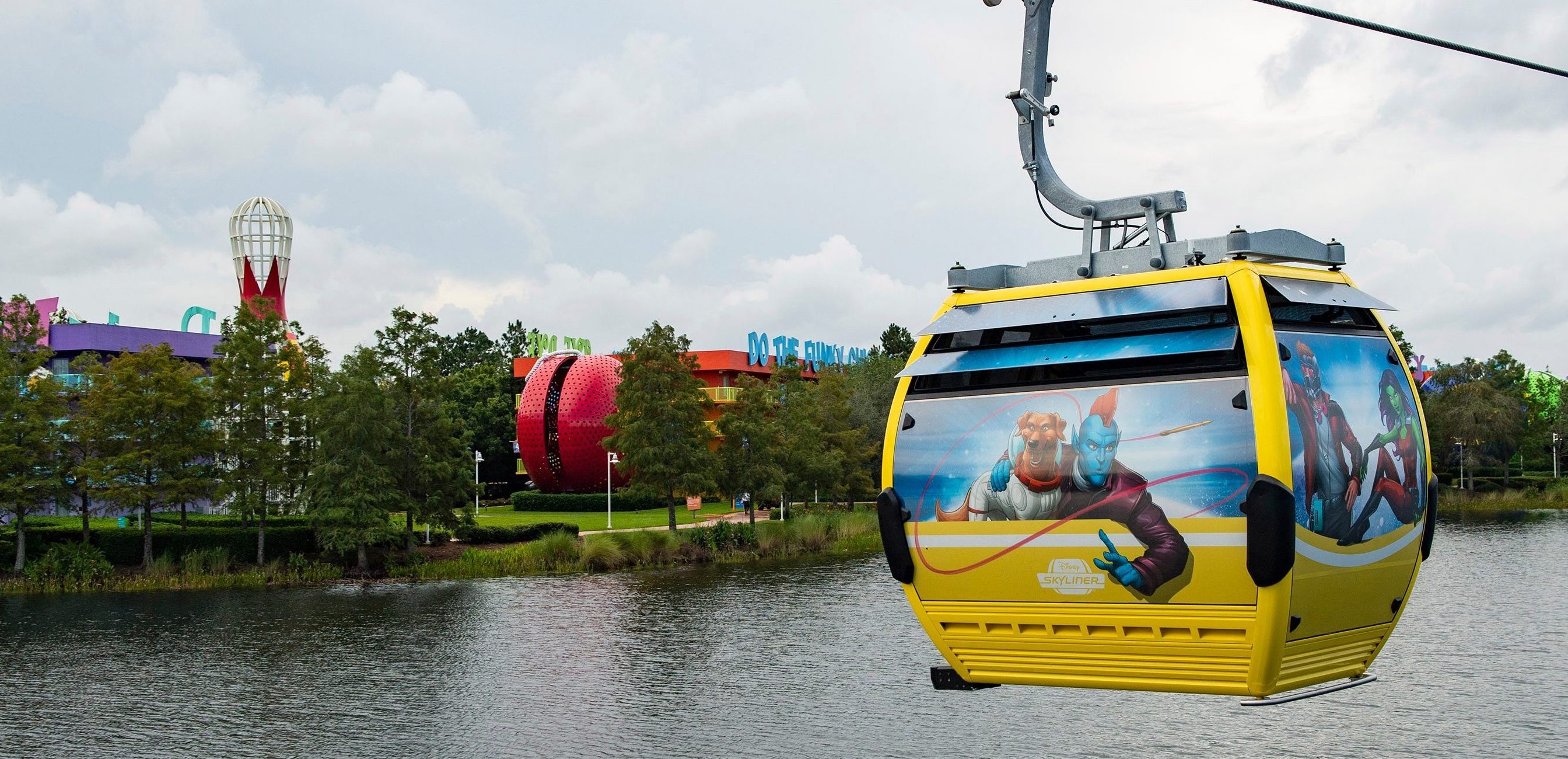 Disney Skyliner transports guests between Disney’s Hollywood Studios and Epcot to four resort hotels – Disney’s Art of Animation Resort, Disney’s Caribbean Beach Resort, Disney’s Pop Century Resort and Disney’s Riviera Resort. (Photo courtesy of Disney)