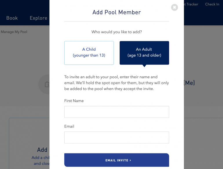 If you’re adding a child under the age of 13, you will need to create their individual TrueBlue account and add them as your dependent. For adults, simply fill in names and email addresses to send them email invites.