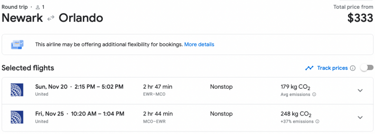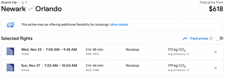 Are you looking for the single best way to save money on airline tickets? Then, you need to be flexible. This is probably the most common tip you’ll ever hear, but it’s true. The more flexible you can be when booking your flights, the better. Let’s take a look at a flight from New York to Orlando during Thanksgiving. That holiday weekend is known as one of the most-expensive travel dates on the calendar.