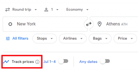 Price alerts can contact you when the fare you’re looking to buy drops in price. Again, Google Flights has a feature that will automatically notify you when flights are cheaper. To set this up, first, conduct your search. Then, in the toolbar on the results page, you’ll see a toggle to turn on price tracking.