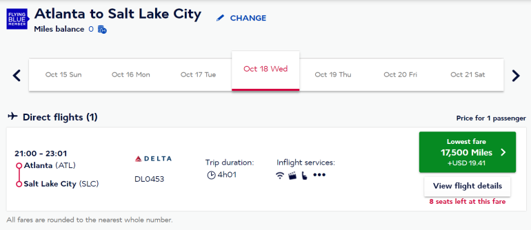 Flying Blue is another SkyTeam mileage program that you can use to save on booking domestic Delta award flights. While Flying Blue prices Delta award flights based on the route and date, there are still some gems.