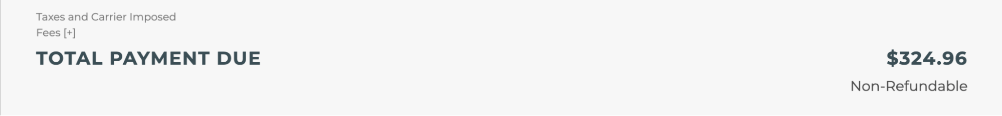 Once again, enter your contact information, skip seat selection and choose any other add-ons you need. Make sure to keep your selections as similar to your other booking as possible to ensure you are comparing apples to apples. Eventually, you’ll get a real “total” before entering your credit card information.