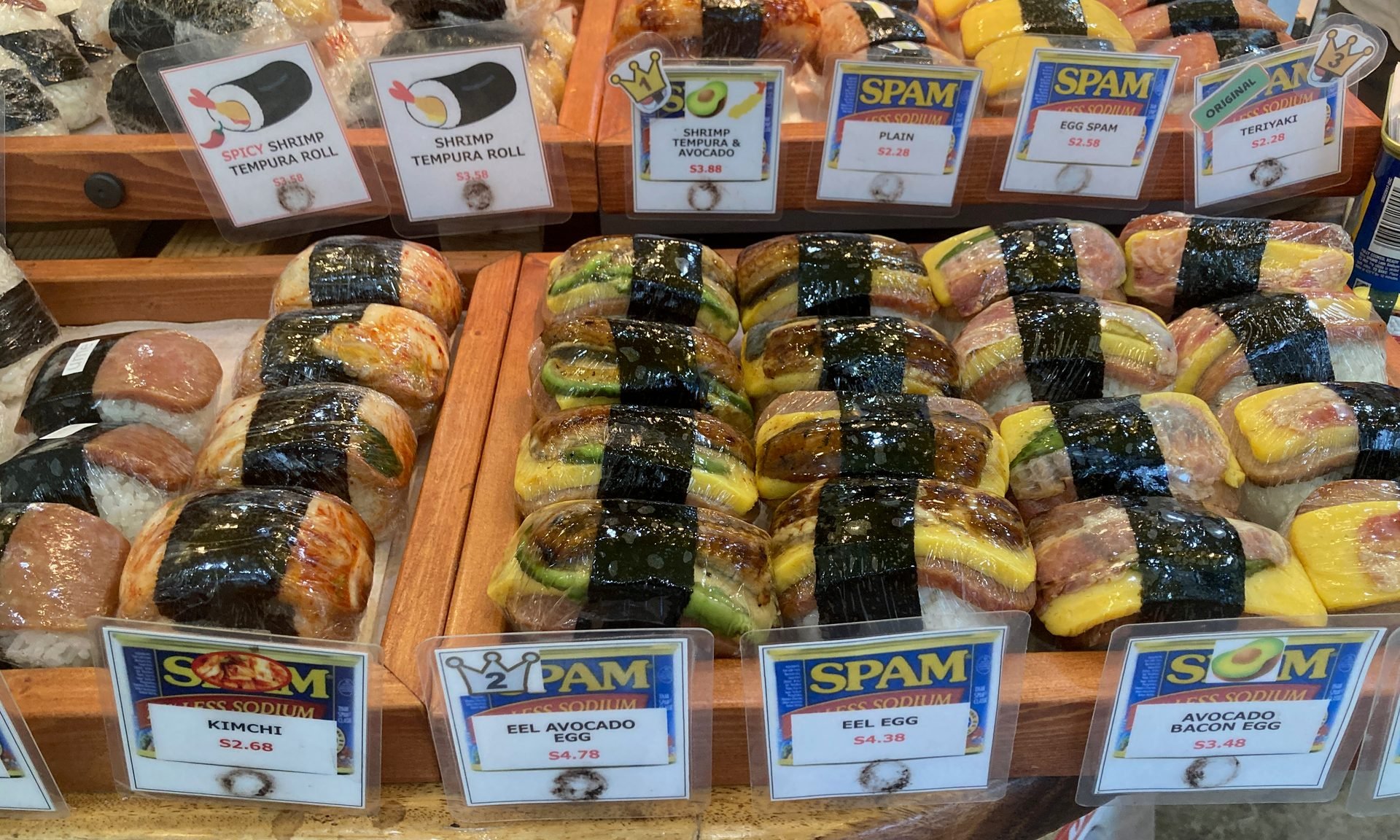 Musubi Cafe Iyasume has a range of spam musubi options. (Photo by Sally French)