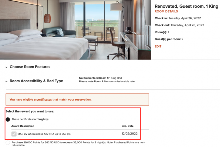 Keep in mind that Marriott won't allow you to attach your e-certificate on a Points Advance booking online, so you won't see your certificates if that's the case. Instead, you'll want to have all the necessary points already in your account.