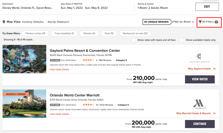 Marriott will then populate a list of your results, including the cash rate and how many points it would cost you for the entire stay.