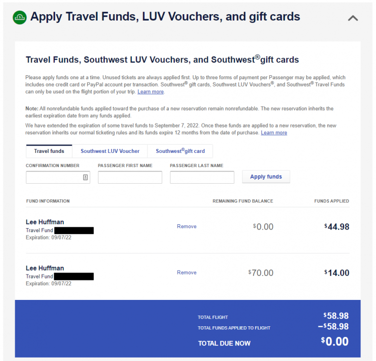 Remember, travel funds from other passengers may not be applied to your ticket.