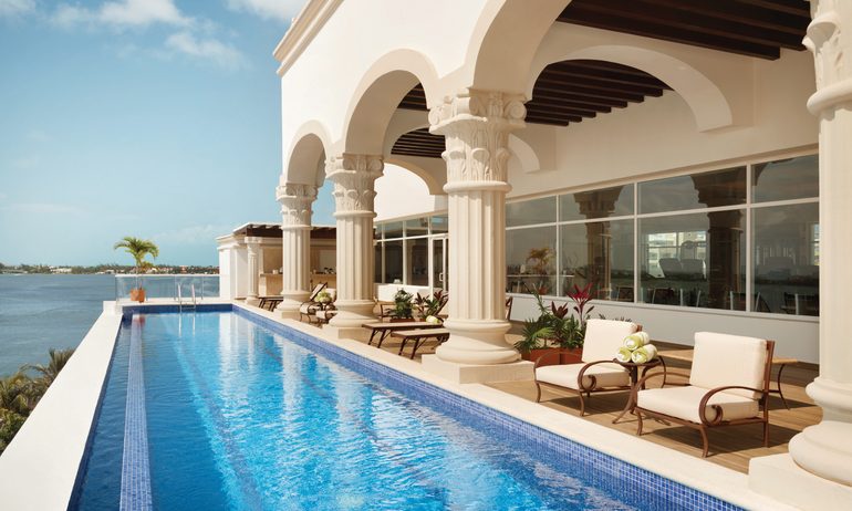Musicians, dancers and acrobats entertain by the pool, and a host of daily activities keeps everyone busy rain or shine. These include things like Spanish lessons, dance classes and virtual reality golf sessions. When it’s time to give the parents a break, a kids club offers supervised activities, and a teen lounge has virtual reality simulators and table games. There’s a Mayan-inspired spa with 13 treatment rooms and six beachfront palapas.