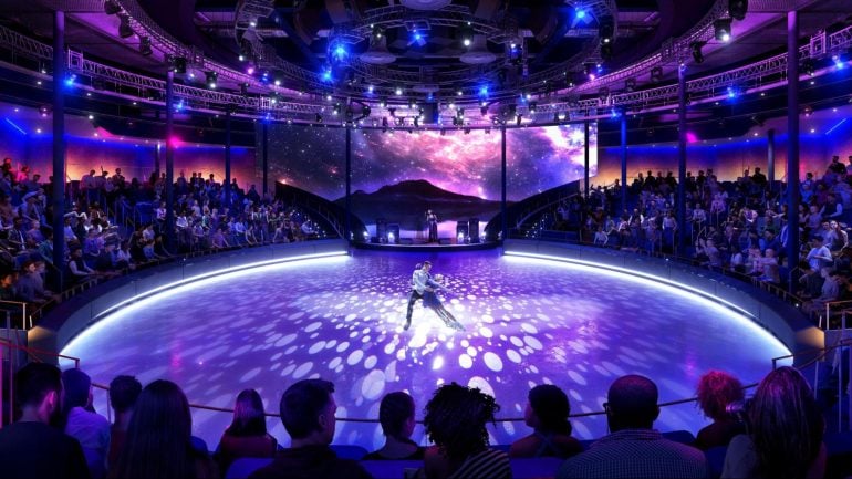 In addition to the AquaDome entertainment venue, there’s a separate ice rink, plus a theater that will feature Icon’s rendition of The Wizard of Oz, among other shows. Icon also has shorter shows available for families at select venues.