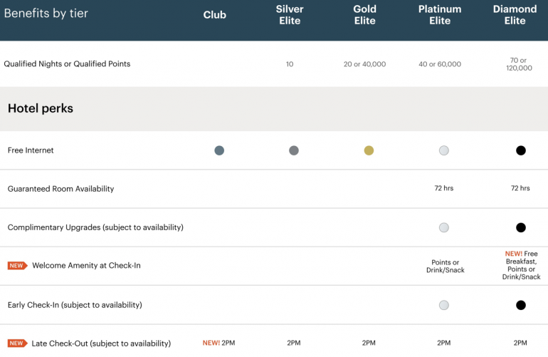 Members will continue to get a choice of rewards every 10 nights — with a second bonus choice at 70 elite nights (similar to the 40-night threshold).