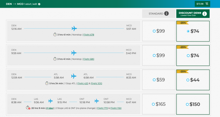 In these flights between Denver and Orlando, savings ranged from $15 to $25