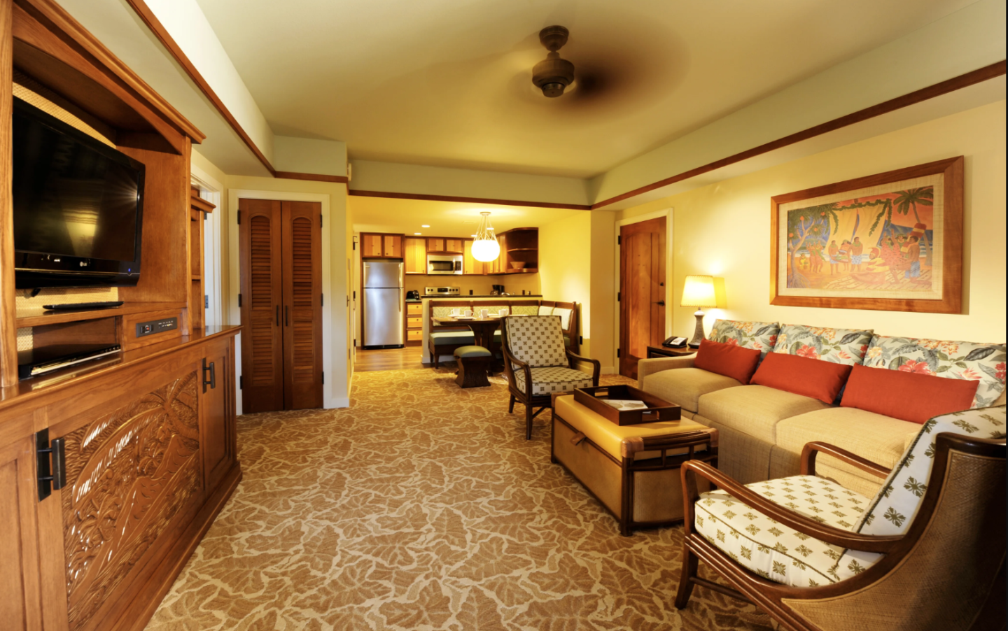 At Aulani, a Disney Resort & Spa, families can stretch out in deluxe studio, one-, two- or three-bedroom villas which feature separate bedrooms and living room spaces. (Photo courtesy of Disney)